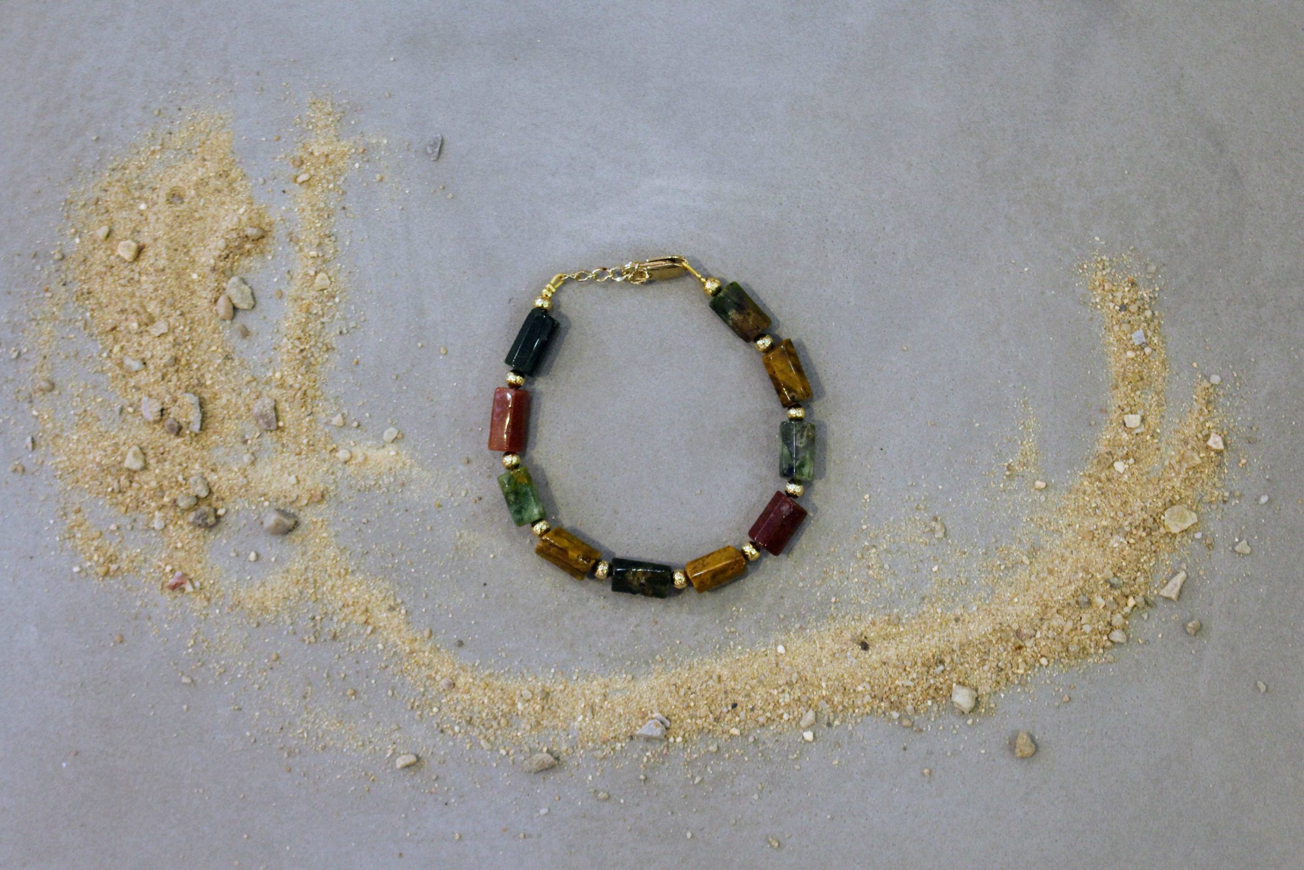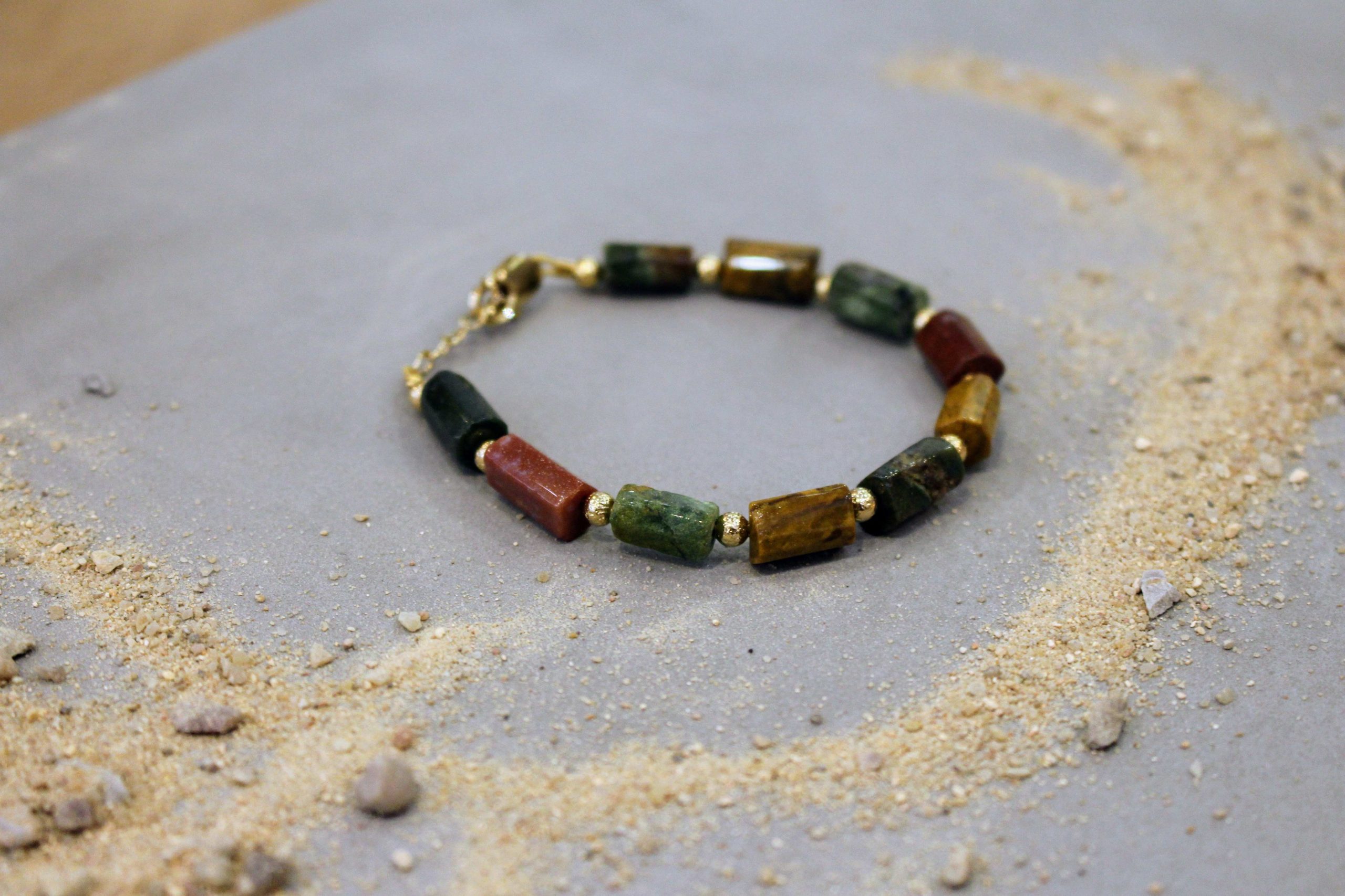 Pour les amoureux des pierres et des couleurs chaudes rappelant la terre et des trésors de la nature, le bracelet FORCE TRANQUILLE orné ici de jaspe picasso est fait pour vous.